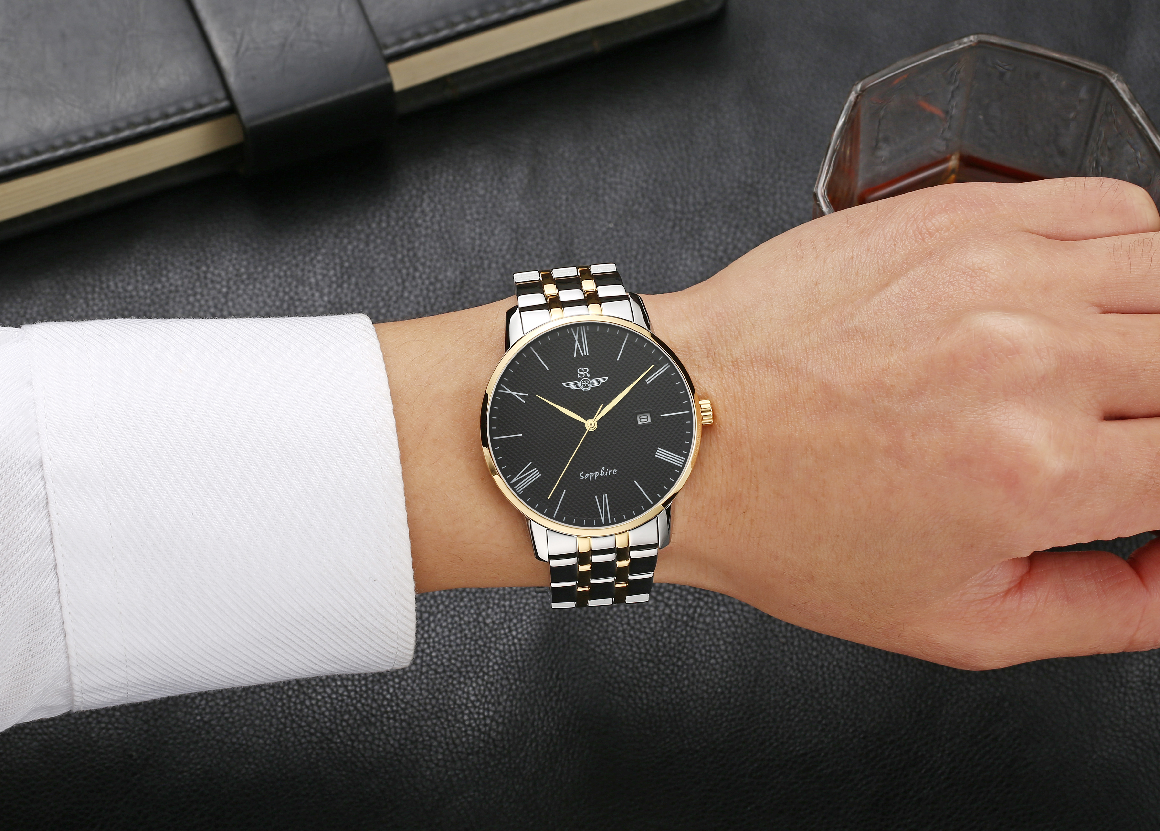 ĐỒNG HỒ SUNRISE NAM DÂY KIM LOẠI 3 KIM SG1074.1201TE sử dụng bộ máy Nhật Bản chính hãng, kiểu dáng đồng hồ thời trang, dây vỏ inox đúc mạ màu vàng (đờ mi) công nghệ PVD cao cấp không phai, mặt kính sapphire nguyên khối chống trầy xước. Đồng hồ 3 kim xem giờ truyền thống và 1 lịch ngày. Khả năng chịu nước 50M.