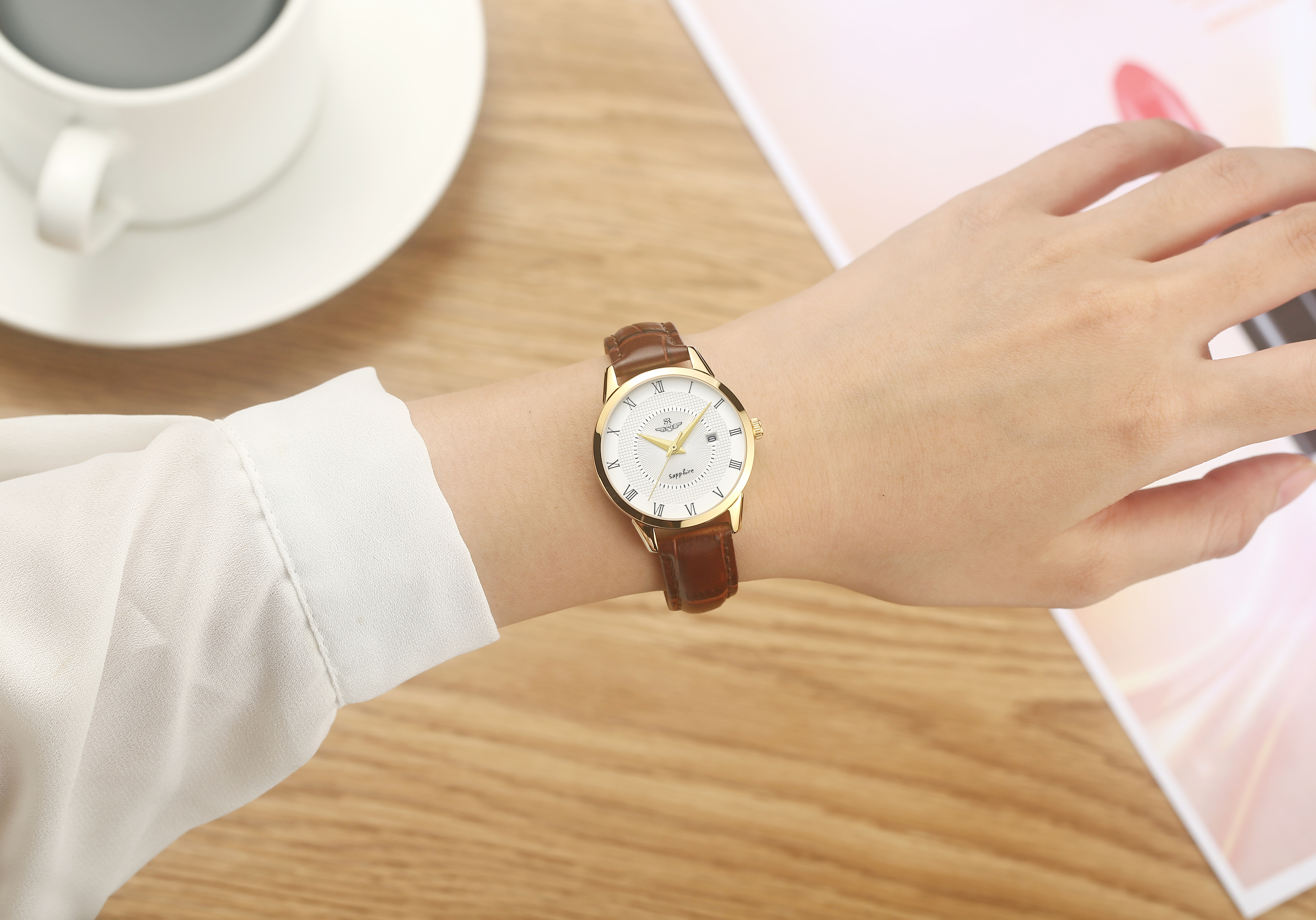 ĐỒNG HỒ SUNRISE NỮ DÂY DA 3 KIM CHÍNH HÃNG SL1057.4602TE sử dụng bộ máy Nhật Bản chính hãng, kiểu dáng đồng hồ thời trang, dây da 2 lớp chống thấm, vỏ inox đúc mạ màu vàng công nghệ PVD cao cấp không phai, mặt kính sapphire nguyên khối chống trầy xước. Đồng hồ 3 kim xem giờ truyền thống và 1 lịch ngày. Khả năng chịu nước 50M.