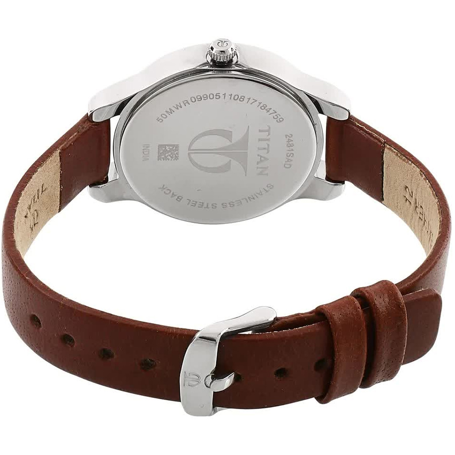 ĐỒNG HỒ TITAN – WORKWEAR – QUARZT (PIN) – NỮ – DÂY DA – 3 KIM – 2481SL07 Kiểu dáng đồng hồ thời trang với thiết kế trẻ trung sang trọng, mặt kính khoáng cứng chống va đập. Đồng hồ 3 kim xem giờ truyền thống, độ chống nước 30M.