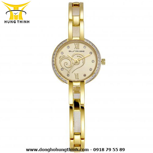 Đồng hồ thời trang chính hãng SUNRISE DÂY KIM LOẠI NỮ BA KIM SL6772.1407 kiểu dáng đồng hồ thời trang dây, vỏ Inox đúc nguyên khối mạ màu vàng công nghệ cao không phai và đính đá Swarivski cao cấp, kính sapphire nguyên khối chống trầy xước. Đồng hồ 3 kim quay hiển thị giờ, phút, giây truyền thống, mặt đồng hồ màu vàng sang trọng.